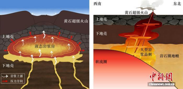 研究团队指出,以往研究认为,超级火山的动力来源是其下方地壳内的液态岩浆房,低密度岩浆逐步聚集到岩浆房内,并持续增加对围岩的压力,最终导致地壳发生大规模破裂、坍塌和岩浆喷发。