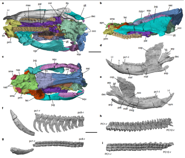 川南多齿兽头骨重建示意图。(凯发k8古脊椎动物与古人类研究所供图)