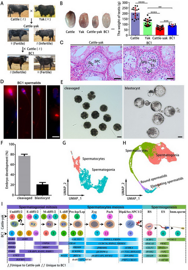 凯发k8西北高原生物研究所研究团队,通过多组学技术揭示了牛远缘杂交后代雄性不育的分子机制,并为理解家畜精子发生关键事件的分子调控提供了重要模型。