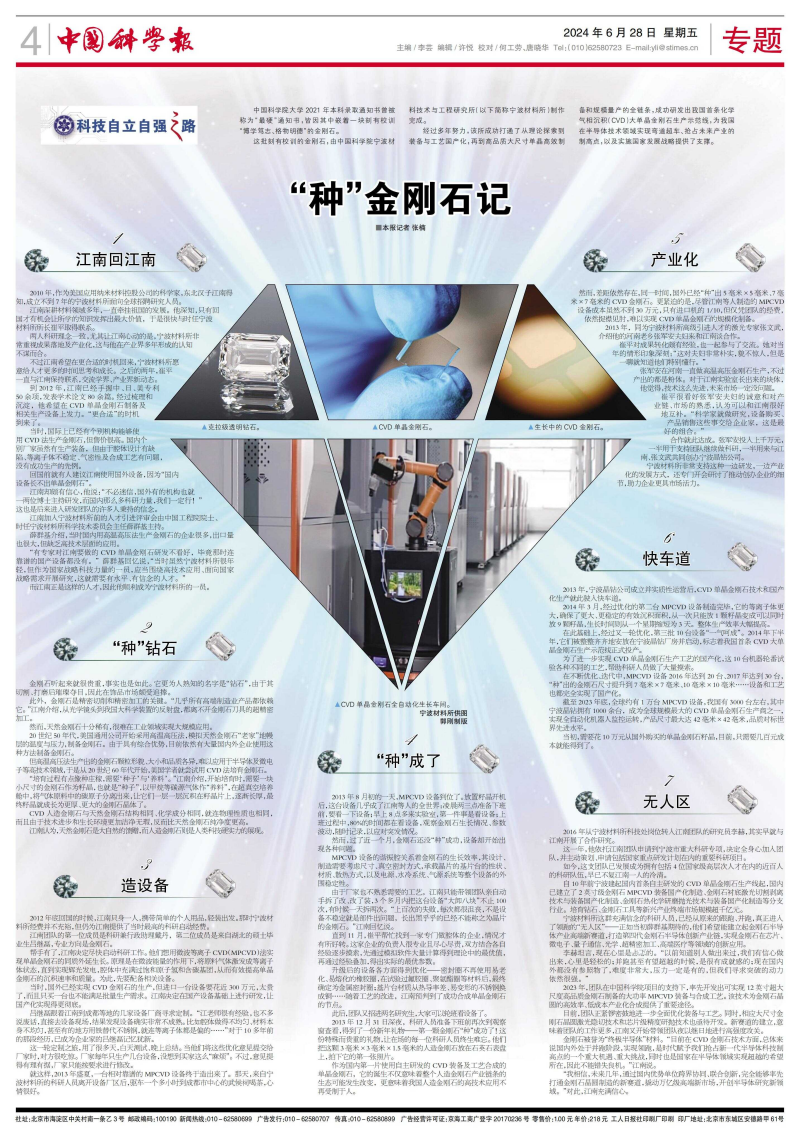 到2012年,江南已经手握中、日、美专利50余项,发表学术论文80余篇。经过梳理和沉淀,他希望在CVD单晶金刚石制备及相关生产设备上发力。“更合适”的时机到来了。