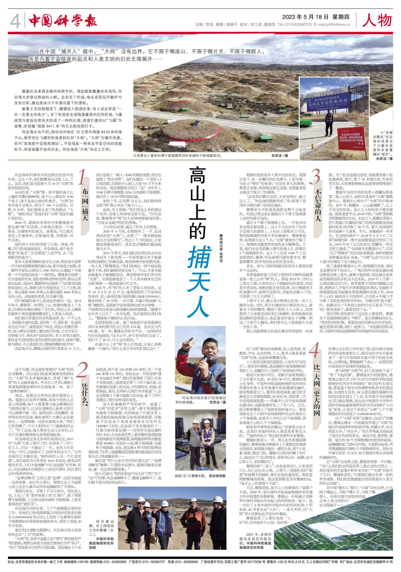 何会海和同事快步钻进候在机场外的车里。过去7年,他们频繁地从这里上山、下山。这次,他们是为迎接5月10日“大网”的国家验收而来。